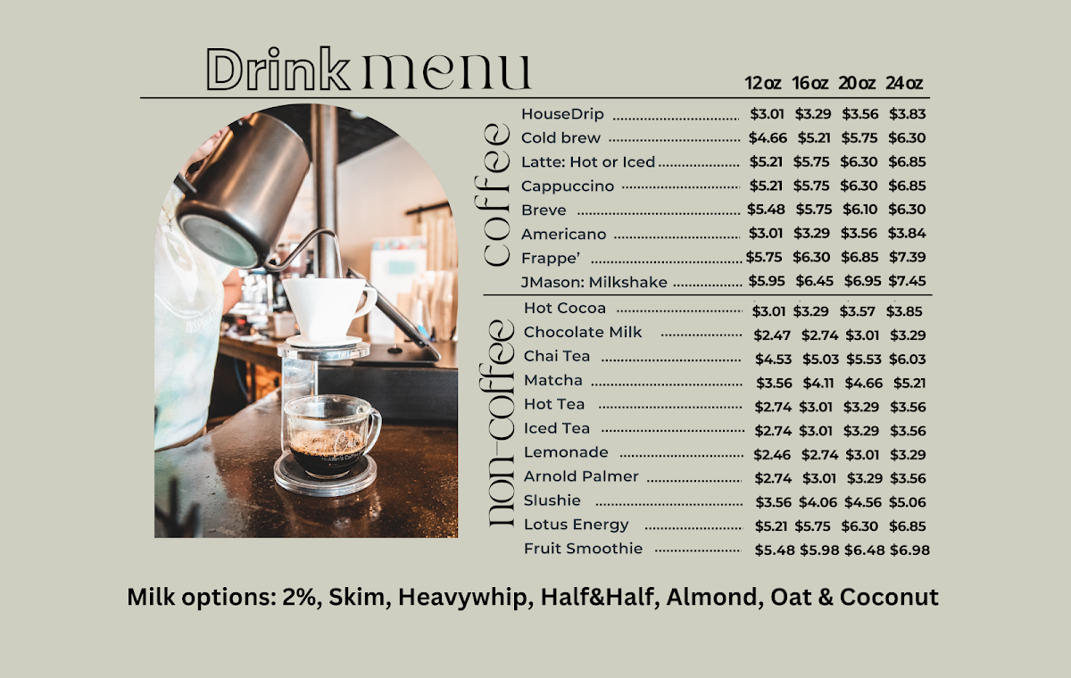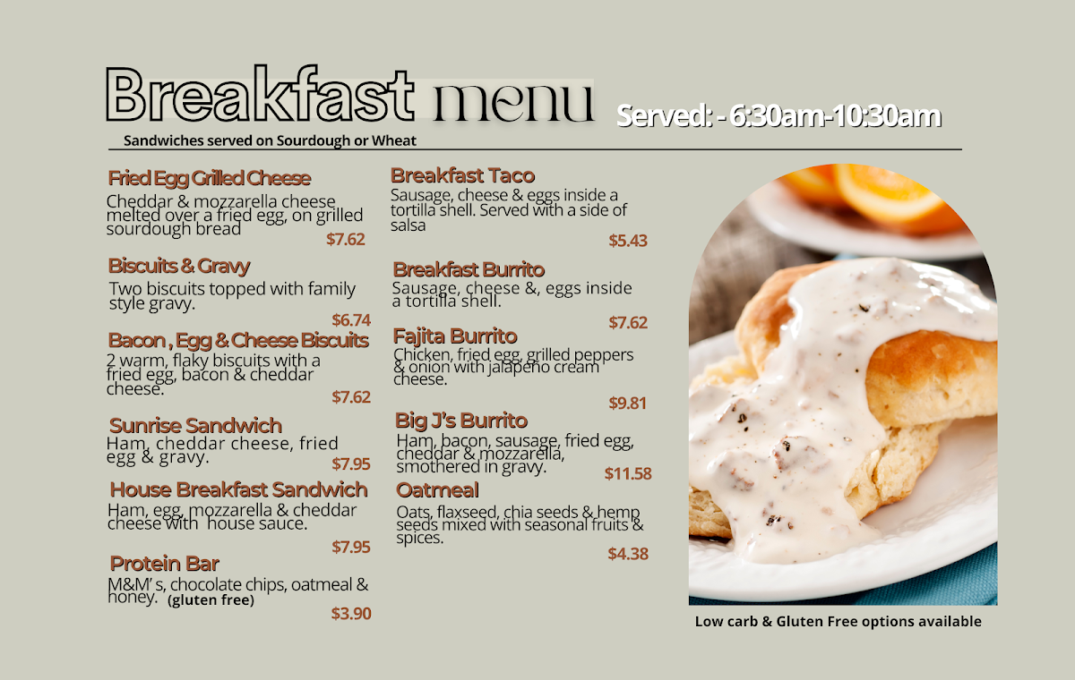 At Key Coffee, the menu caters to a variety of tastes. If you're in the mood for a delightful breakfast, be sure to indulge in their Breakfast Tacos ($5.43), stuffed to the brim and bursting with flavor, or try the savory Biscuits & Gravy ($6.74) for a comforting start to your day. For something heartier, the Big J's Burrito ($11.58) is a must-try, laden with fresh ingredients and a burst of satisfying flavors that will keep you coming back for more.